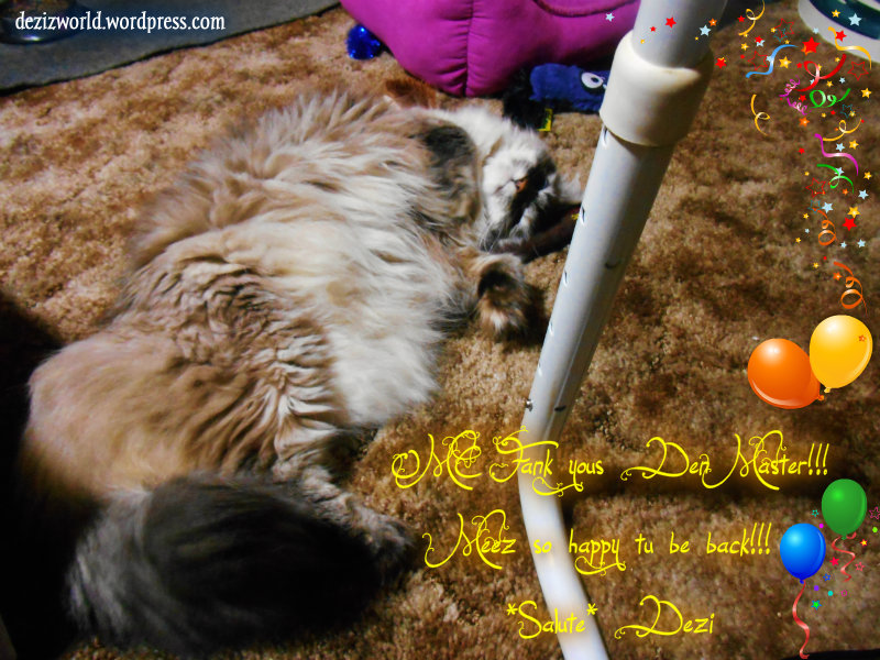 You were a brave girl Dezi, proud of ya YAY! Good luck to you and Lexi Caturday on your check ups. I’m sure you both will do just fine. I take Gizmo and Leo Caturday too for their check ups, sugar testing and blood work. Good news on the Cat Scouts. Gracie helped me out today through my e-mail, so I’m about set to let Gizmo go visit for a bit and see if we can change his profile picture. Love Ya’s!