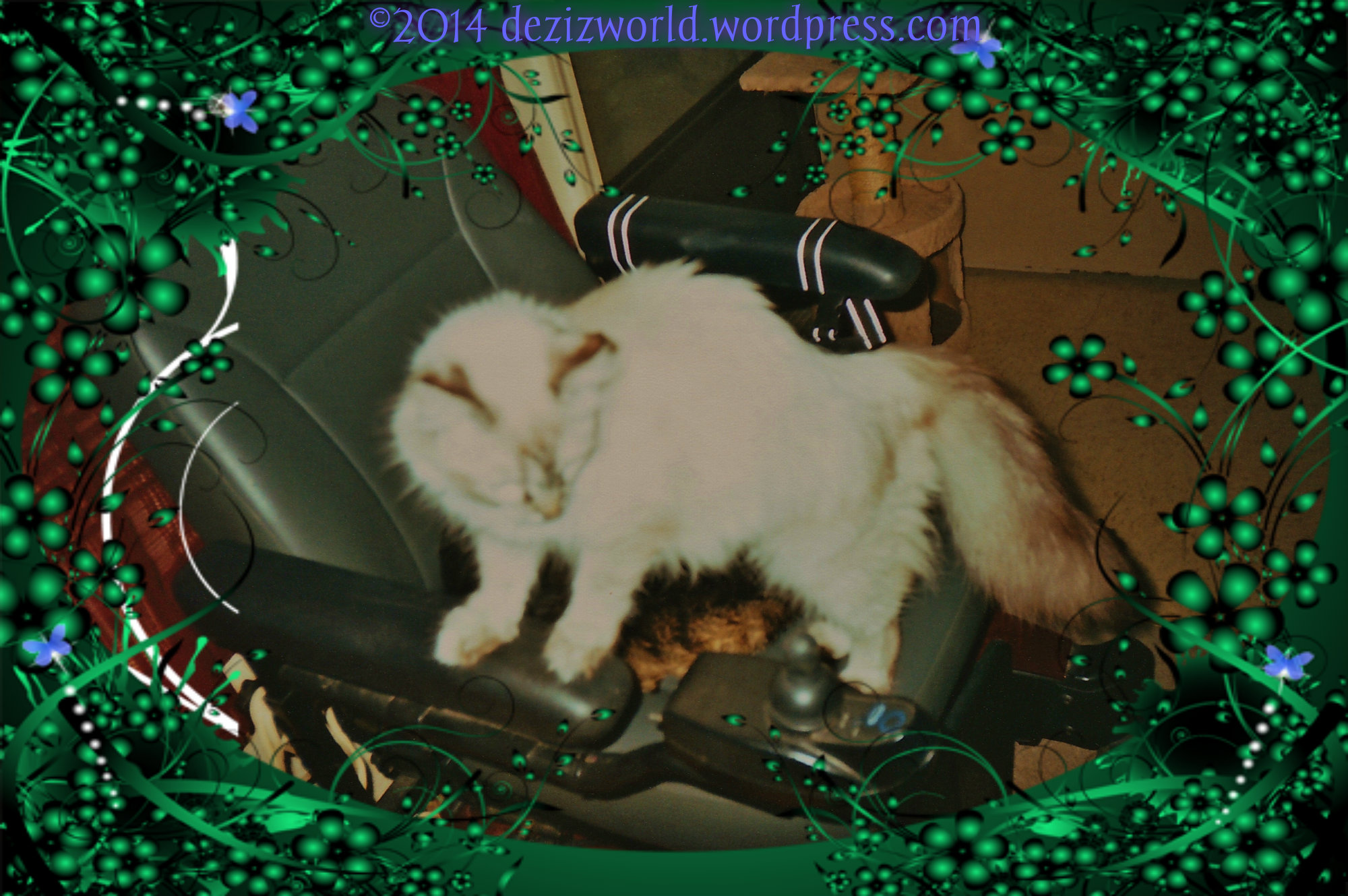 Dwivin lessons wuz sum of meez favowits. this one meownin’ Me wuz suwe me finally had gotten dwivin’ dat chair to da pawdee box room down pat. So when it came time to head fur da pawdee box room me hopped onto mommy’s lap and wight into da dwivin’ spot. Sis Lexi meowed dat she wuld meet us in there, and meez just shook me head at hers and meowed she not know what she be missin’. Me looked up at mommy and hers sed, “Okay Dezi, let’s go.” Oh wow, me wuz so excited. Me put meez mouff on da joystick and pawed da power button and pushed us furward vewy slowly.
