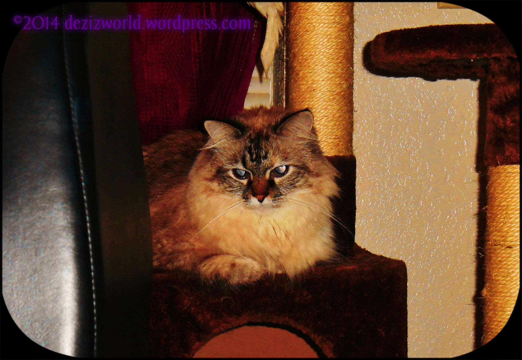 Once weez all in da bed weez say ow purrayers and fank God fur all da blessings Hims has bestowed on us and then fank Hims fur ow furiends and asks Him to keep a hand on you all and bless you and meet yous needs. Then mommy lays down and Lexi and me stawt in purrin’ and massagin’ mommy to sleep. So last night stawted out da same as any udder night. Mommy turned off da teevee and puter and told us it wuz time to go night night, and then picked me up. Evewy once in a while Lexi will walk to da back by hers selff, and last night wuz one of those nights. So Lexi headed for the pawdee box room and mommy picked me up. Then she turned out da lights and we headed toward da back of da house.
