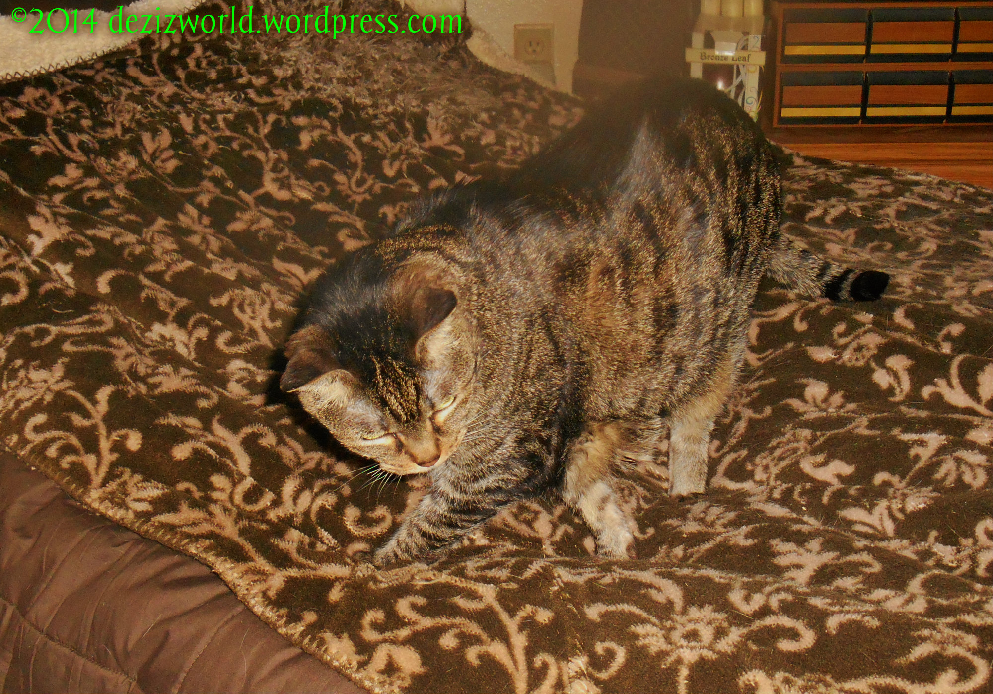 OMC What a day weez hav had. Me guesses me shuld stawt wiff last night. Dat’s when it all began. Well as you all know sis Lexi and me sleep in da bed wiff mommy evewy night, and mommy actually carries us to bed. It’s purrawly ow most favowit time of day. Mommy turns off da puter and teevee and tells us it’s time fur night night and then picks us up and carries us to da pawdee box room. Weez all do sum business and usually sis Lexi heads fur da bed first. Hers duz hers pacin’ and twyin’ to jump up on da bed fing and then mommy picks hers up and helps her onto da bed. Hers just can’t jump dat high anymowe. Come on hers be 15 years old. Dat’s why weez askin’ fur help raisin’ gween papers to get hers a set of stairs. (da only fing weez askin’ fur dat didn’t get wuined in da floods cuz weez not hav any to begin wiff) At sum point she’s gotta stawt havin’ sum kinda purrawlems, wight? Anyways mommy helps hers up to da bed and then comes back to da pawdee box room and picks me up and carries me to bed.