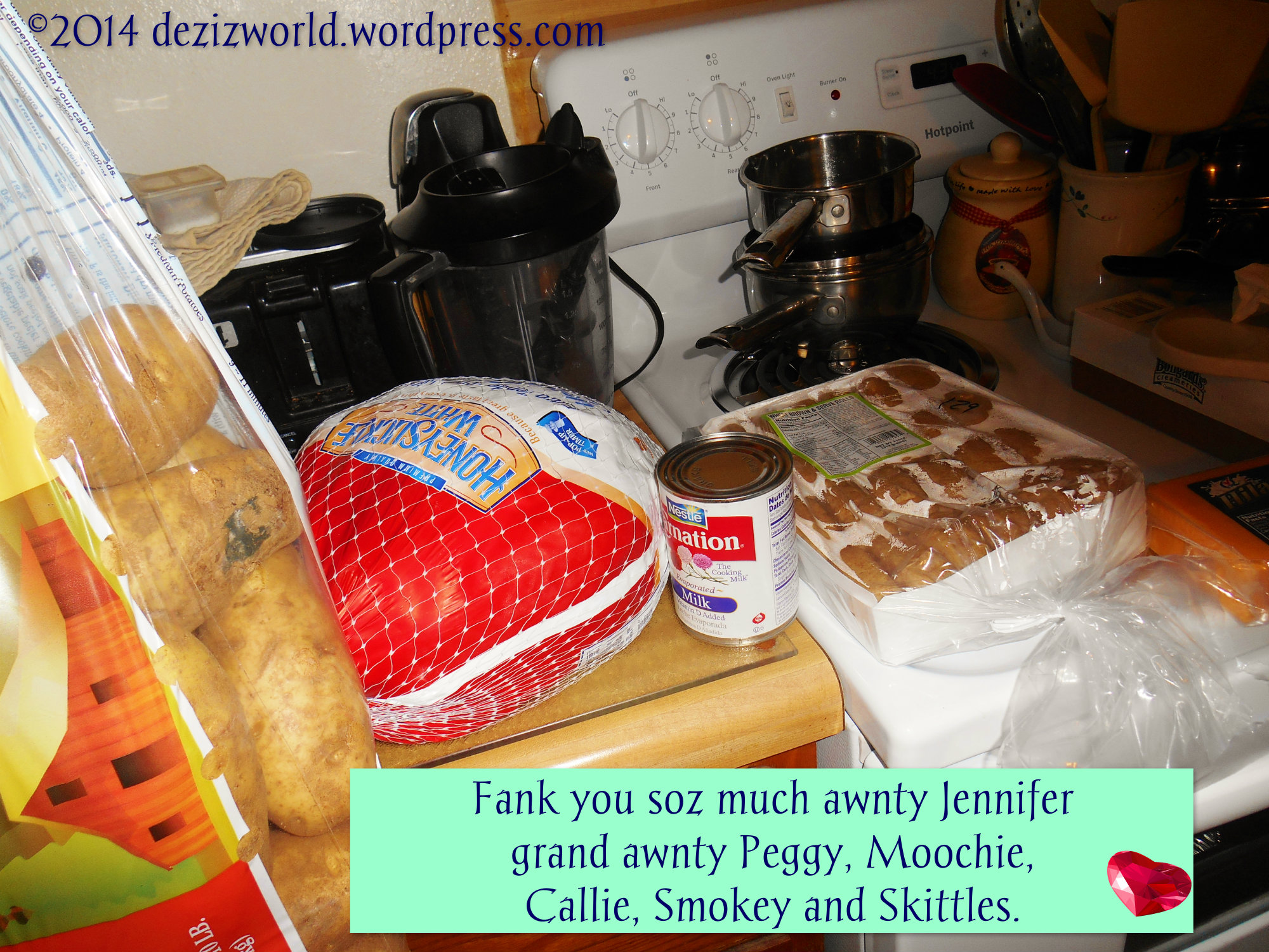 What a day weez havin’. We awe so twuly Blest. Fank you Blogville and all of you dat make up this wunnewful place. We awe so gwateful to be here and be yous furiendss. And Fank you to all ow Facebook furinds and framily. You hav been so good to us we kuld never twuly expwess ow gwatitude. We luv all of you very much. Happy Fanksgivin’ or Blest Fursday as we hav named if fur all ow furiends acwoss da pond.