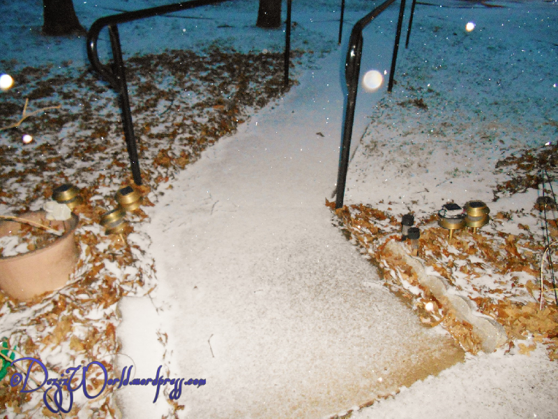 Meowllo evewypawdy weez almost fwu anudder week. We weally can’t believ how fast this year be goin’. Well ow snow melted and oh we wuz so happy. Da sun even came out fur ‘bout 15 minutes on Tuesday. And then…da heavens opened and out of them came ICE. Yep dat’s wight, ice. Not snow or water, but sleet. And it didn’t just fall, it stuck. We nevew got abuv fureezin’ temps on Wednesday. Da wind howled like a wolf all day and night. And now it’s all white outside again. These fotos wuz taken ’bout 2 in da aftewnoon. Lookit how dawk it is out there. Mommy sez she sure hopes this stuff melts today cuz we hav herz wegular doctows pointment on Furiday. Kuld get innewestin’ dat’s fur sure.