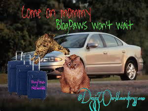 And on anudder fwunt, weez be getting’ all packed up and weady to go to BlogPaws. We be so ‘cited we can’t hawdly stand da wait. We can’t wait to meet so many of you and finally put togedder da hoomans wiff da cats. Mommy knows all our kitty furiends names, but needs a cwash course in da hoomans. So purrlease furgive us ifin weez not recognize you wight off. Weez countin’ down da days. And we almost furgot, weez joinin’ up wiff Rascal and Rocco fur da Pet Pawade Blog Hop. It’s still stowrmin’ so meez gunna go check out da Cat twee and sissy’s gunna take a nap and mommy’s gunna fix anudder cup of coffee, weez’ll see y’all soon.