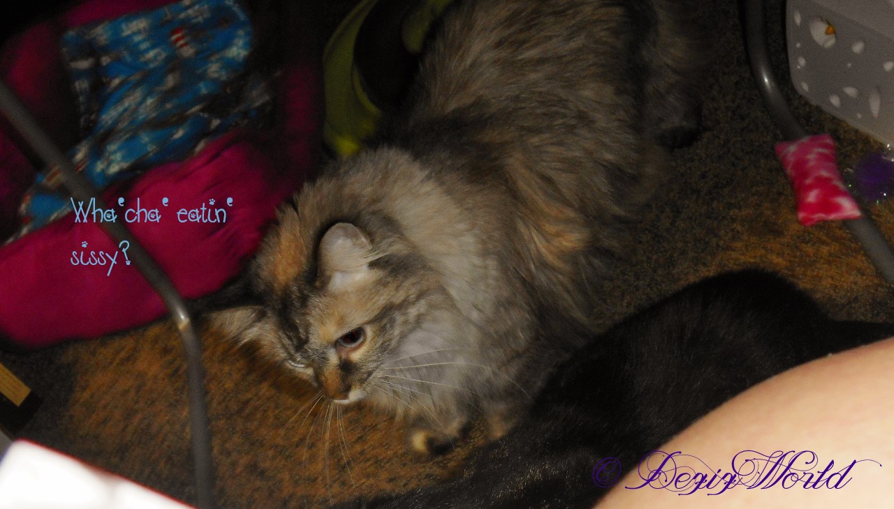 Sissy? stop eatin’ fur a minute and tell everypawdy what you fink ‘bout these tweats.
