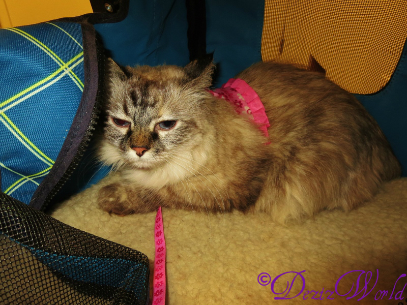 So as you know me went to see a new VET on Furiday. We haven’t been happy wiff our current VET cuz we just don’t feel like hims duin’ hims job weally. Well since sis Lexi got da CKD at da furst of da year, any money we get goes towards hers VET visits, medicines and generally takin’ care of her. So when me got a black spot tween meez shoulder blades dat gwu, mommy didn’t know zactly what to do ‘cept purray. And then as you know one of our fcebook awnties called us and sed she had a feelin’, and gave mommy da money to take me to da VET. Mommy called wound and found one she fawt might be good (da hospital’s been in business fur 50 years) and made a pointment. By da time meez pointment rolled wound meez black spot had stawrted getting’ smaller, but mommy fawt “better safe than sowry.”