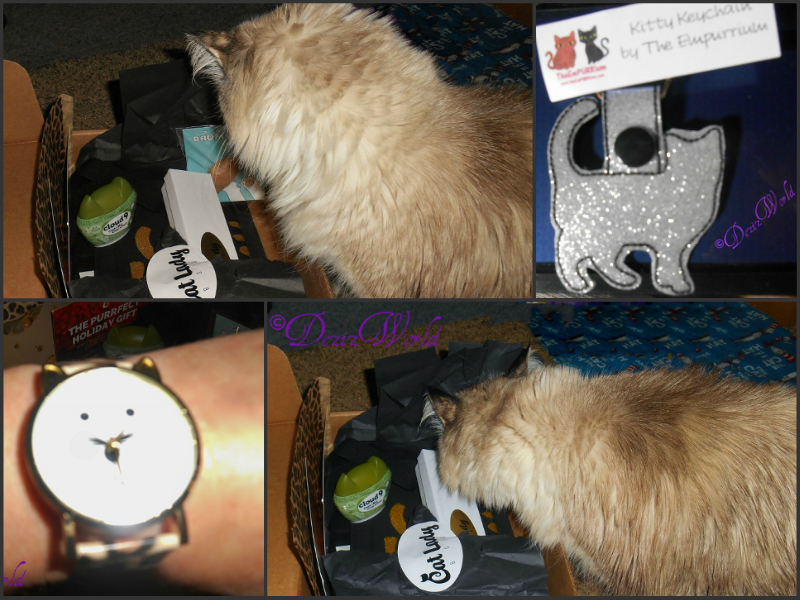 Thank you Dezi. I do have a great box to tell everyone about today. I know some of you may have already seen one or more of these boxes around the blogosphere, but I was thrilled to be chosen to receive for a review the November Cat Lady Box. And when my box arrived even the girls got a surprise. We had received the Crazy Cat Lady box. Let me tell ya’ a little about the company before we get to the really good part. Dorian Wagner, the founder, decided it was time to debunk the old cat lady stereotype. That doesn’t mean that she or others, including me aren’t still crazy about cats; we are. The point is that we’re not the one people see in media every now and again with a hundred unkempt cats. Cat ladies come from all walks of life and financial standing. We all have one thing in common, our love of everything cat. So with that in mind Dorian began a company with a mission. To provide cat ladies with their own subscription box each month filled with little tasteful cat themed treasures for us to show off our love of cats. And even better still, 5% of the monthly profits are donated to shelters and rescues. You can also shop for single items from past boxes on the Cat Lady Box website.