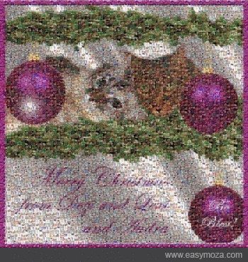In da meantime, enjoy all da beautiful cards we received and have a very Merry christmas Eve. Fur a bettter and bigger look at our mosaic, or to create yous own, click here. You may also see it here where you can zoom in on a purrticluar spot.