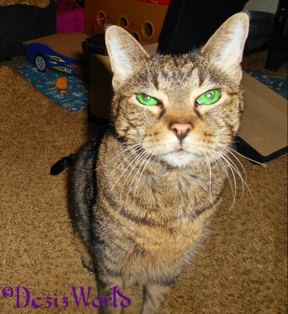 Lexi: Fankz Dezi. Yep he shur nuff looked shocked when he saw me. He asked mommy all da questions ‘bout how I waz duin’ and ifin I waz better. Then he started squishin’ me all over. He told mommy dat my kidneyz, liver and bladder waz awl da right size fur a healthy kitty. Nuffin’ waz swollen or shrunken. My furz waz kovered in white flakez cuz I habz a dandruff and dry skin purroblem and we don’t habz a humidifier anymore. It broke a kupple yearz ago and mommy juzt hazn’t had da green payperz to buy another one. She had hoped our fountains wood add sum humidity to da air, but alas, not so much. Anywayz az sissy told ya’ mommy beez treatin’ me her way stead of heedin’ da VETz recommendashunz. I lozt a lot of weight when thiz awl star-did, but I’z been holdin’ my own fur da lazt year. I’z not lozt any more weight, and da VET kuldn’t believe it. He didn’t spekt me to still be alive, much less lookin’ and feelin’ good.