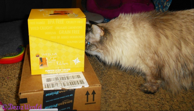 On da material blessing side, we got a box of yummy Weruva Pumpkin’ Lickin’ Chicken yesfurday. We don’t know who they be from cuz there wasn’t any infurmation in da box, but we sure do wanna say a meowsy big Thank You. We luv da Weruva pumpkin’ chicken noms. And awnty Anonymous donated some green papers to sis Lexi’s medical care, Thank You bunches and bunches. We really needed it, specially since it appears sissy may be in need of seein’ da VET. And as always we are so blest to have all of you in our lives. We really miss readin’ your blogs and posts. We feel like we haven’t seen our furiends in days. We hope to get somethin’ figured out with da catputer soon so we can get back to normal. Least what’s normal fur us.