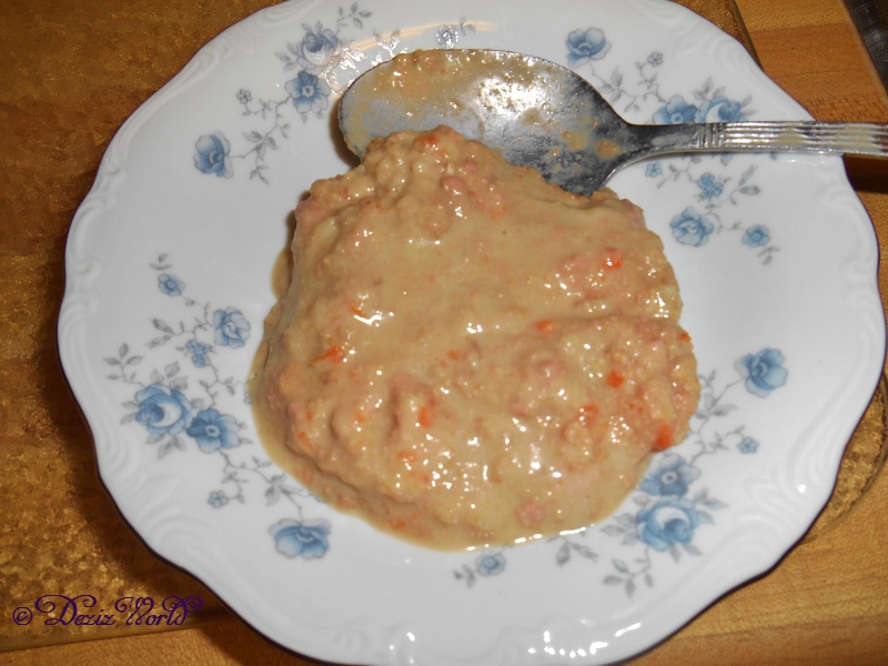 Solid Gold claims dat da rich coconut milk provides much needed calcium that’s easily digested and gentle on kittys’ tummy. Da Holistic Delights pouches come in 6 flavors. Altho’ da name of our choice says chicken, it includes quite a bit more tuna than chicken. Mommy’s basing dat on smell alone. Da chicken doesn’t contain carageenan, so those of you who look fur dat can rest easy. Anyways, we know you wanna know what it looks like and ifin we liked it.