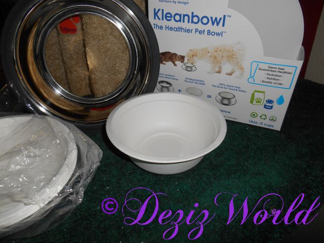 Don’t furget we wanna remind peeps ‘bout da great new Kleanbowl we got from Kinn. They have an Indiegogo Campaign to raise money to make da large 32 ounce bowls. They already have 8, 16, and 24 ounce bowls. These aren’t regular pet bowls tho’. Kinn says da Kleanbowl virtually eliminates 100% of germ build up by using eco-friendly disposable liners. We received da 16 ounce bowls to try out so we could tell ya’ ‘bout ‘em. There’s a really nice Stainless Steel cover dat is placed over da disposable liner bowl. Now you know we gotta tell da truth, and upon furst inspection, mommy was not impurressed. Da liners are made from sugar cane fibers but mommy thought they resembled a thick paper plate and could envision a water soaked, squished bowl dat had water all over da place. Never da less she filled it with water and put it down fur us to try. Dezi and me were both intrigued and drank from it right away. And guess what? No squishy bowl fallin’ apawrt and lettin’ water run all over da place. Now, mommy’s impurressed. Da Kleanbowl would be great fur anyone concerned about germs, who have pets with plastic allergies, travelin’ pets, and purretty much anypawdy. You can purrchase da biodegradable, soak proof refills at Kinns website.