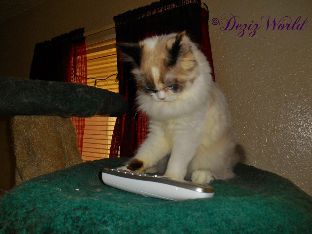 Anyways, the little stinker laid the phone at mommys feet, just outta reach, and began to meow at the top of her lungs. The ringing had stopped now as the voicemail mommy never set up hadn’t answered and the phone disconnected the call.