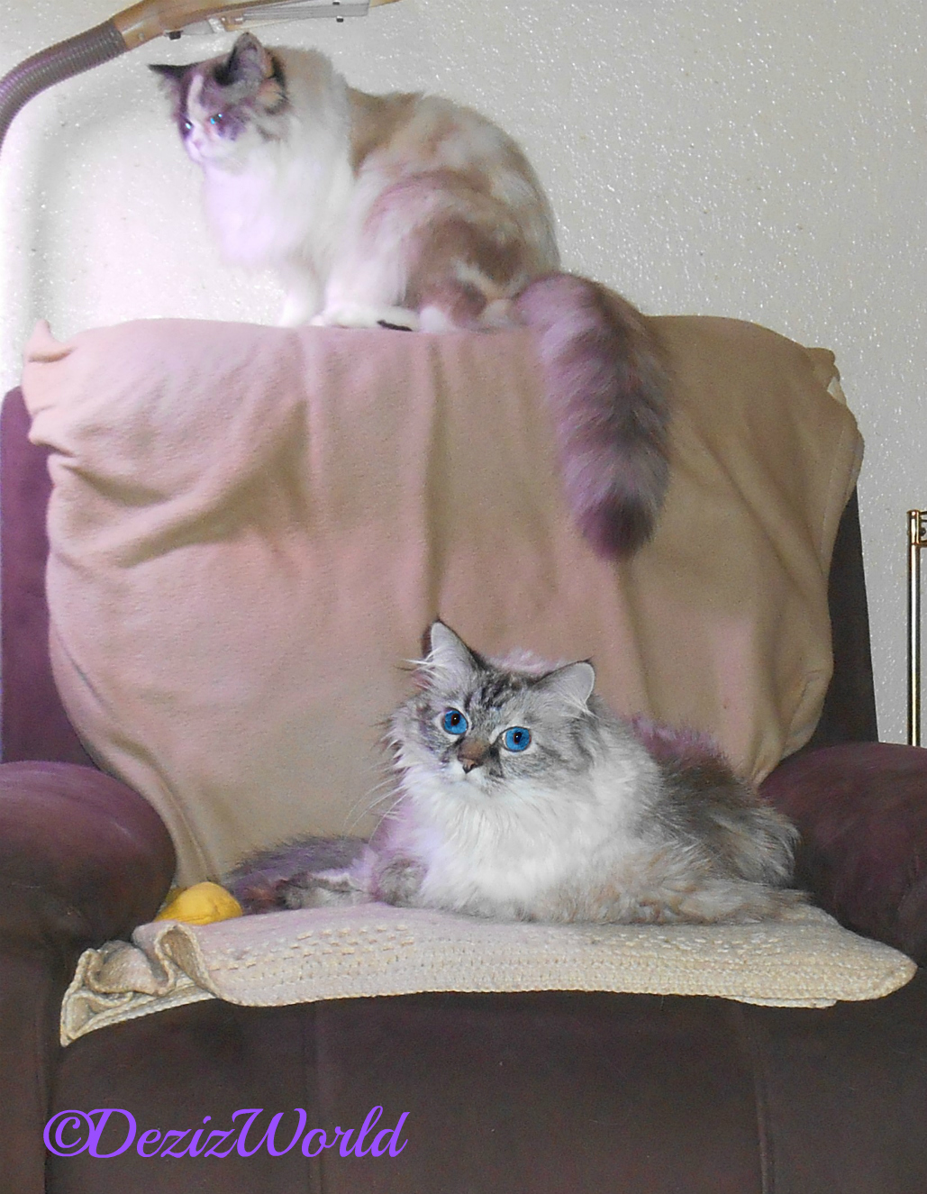 MeOW We are so waterlogged and feelin’ deaf from all the noisy storms and machines ‘round here. We got our furst break in the weather yesfurday and started to visit our furiends, when mommy got word she needed to take care of some business. By the time she finished, she was so exhausted, there was no helpin’ us visit or anythin’ else fur that matter. Ifin ya’ missed our regular Service Cat Monday posty this week, don’t worry, we will return next week with another posty on aggression. Now, (Dezi hears the sound of lawn monsters) the lawn crew’s back!!! Seems their day’s gonna be Wednesday this year.