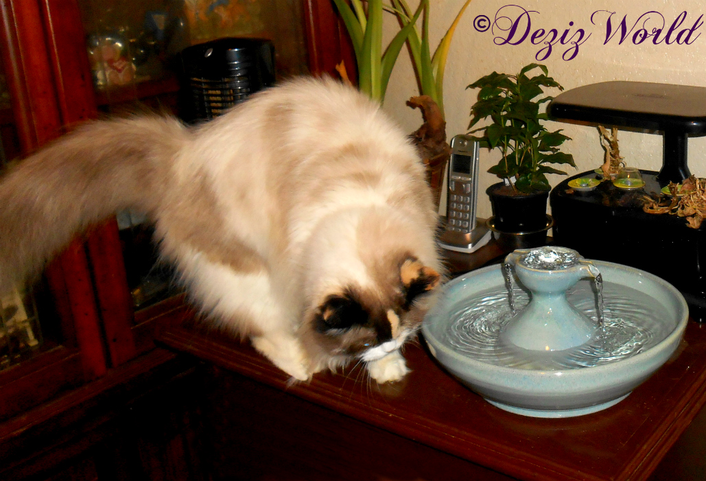 Me thinks so too Raena. Ya’ know, me had a little purroblem with me’s urinary tract a while back and as a result, mommy brought in a fountain to encourage me to drink more water. You know, when you’re searchin’ fur a fountain fur your fur babies, the choices can sometimes seem overwhelmin’. There’s a ton of them on the market. They come in plastic, steel and ceramic, and deliver water in different ways; and the purrices are just as diverse. Ifin that wasn’t enuff, us kitties have our own ideas ‘bout how we want to drink that water.