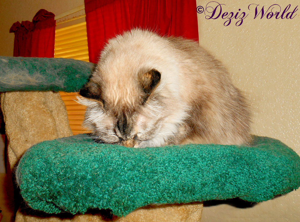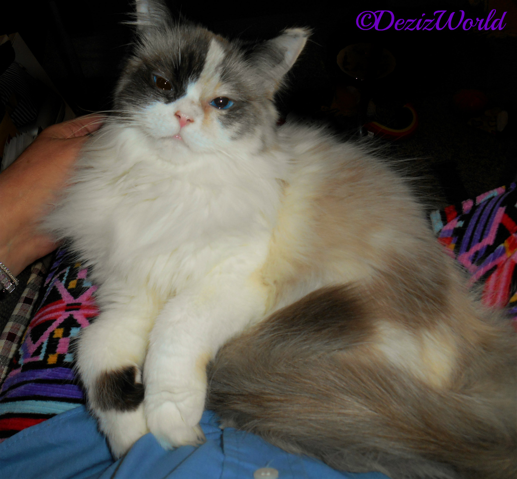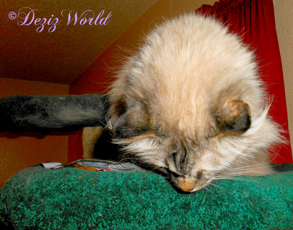 (Dezi meows loudly from UTB) Mommy’s birthday is Caturday Raena. And she always lets us have specials fur her birthday.