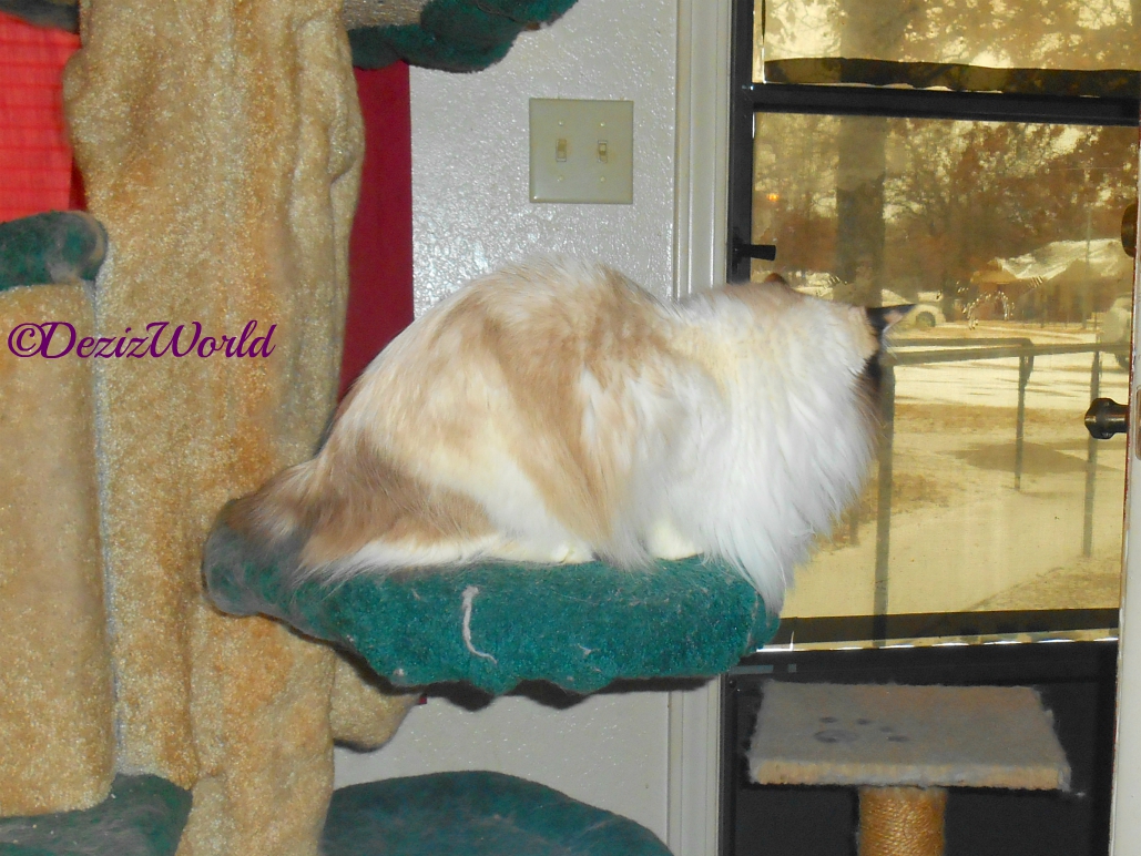 (Mommy A opens the door and window blinds. Dezi and Raena get their first look out for the day) OMC When did that happen mommy? Look’it Raena, it’s all white outside…mostly…okay, in patches. Anyways, it’s enuff. And, it’s New Years Eve.