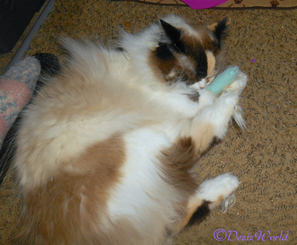 Really sissy? Why would any kitty wanna miss night time cuddles? I’s can’t ‘magine missin’ cuddles with mommy to play. We can do that any time. Meowin’ of, we better go play befur mommy tries to pack up our toys.