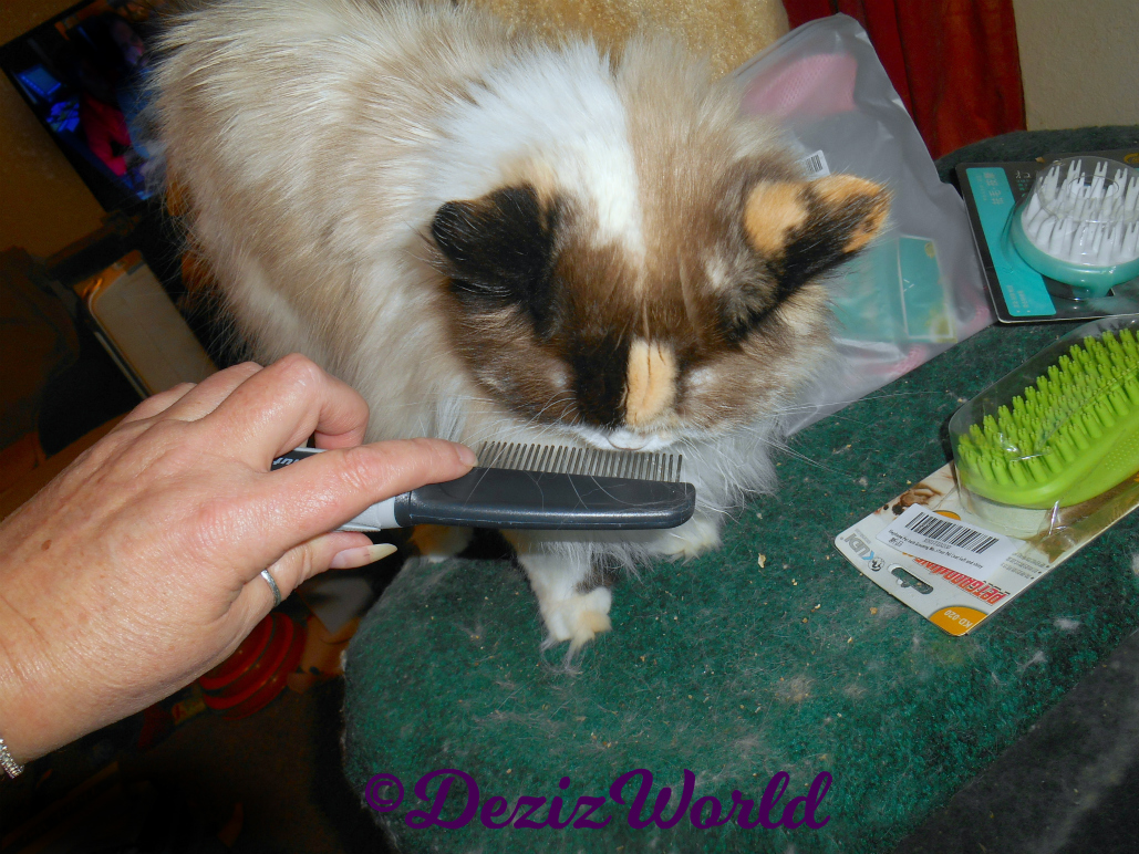 Oh sissy, I’s luvs a good groomin’ session, ‘specially when mommy gets out the groomin’ tools. It’s like a luvs fest, lap luvvins with mommy brushin’ our furs and cooin’ at us all at the same time. Doesn’t get much better than that.