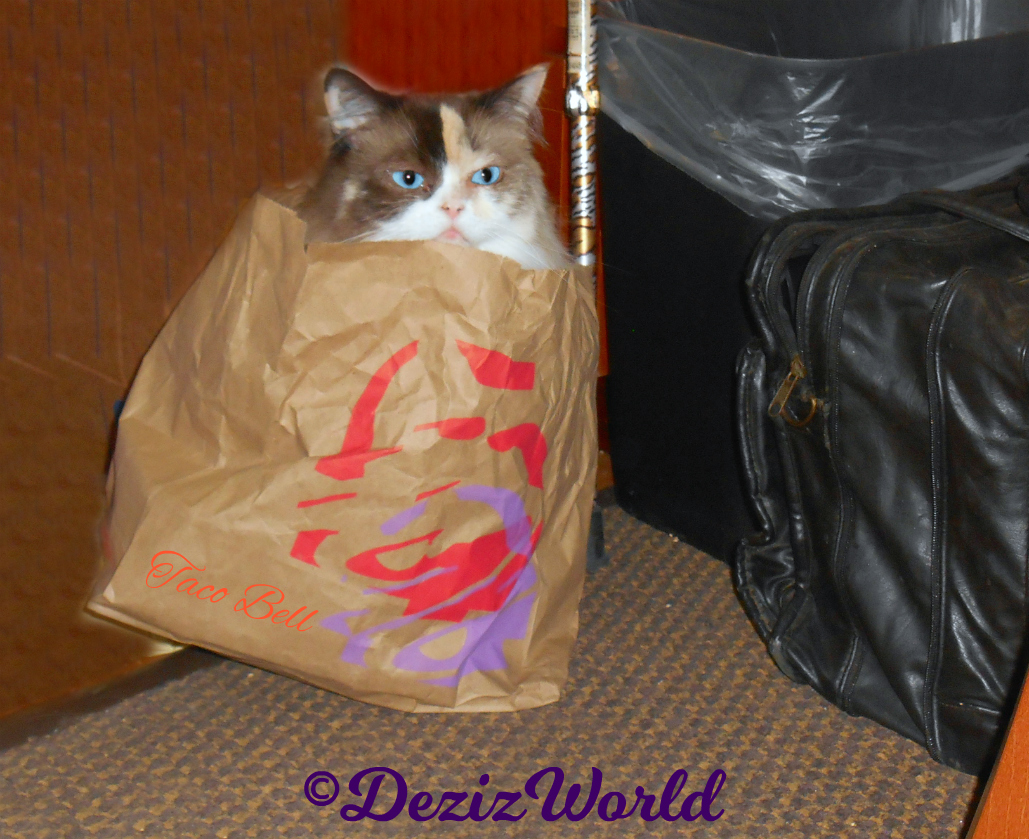 Hey sissy, did you know today’s Cinco de Mayo? Mommy had a coupon fur a free taco from the Taco Bell, so grabbed it in celebration. I’s hopped in the bag and mommy laffed and laffed. She said, “who needs a chihuahua?” I’s not sure what that meant, but the bag was huuuuuuuge.
