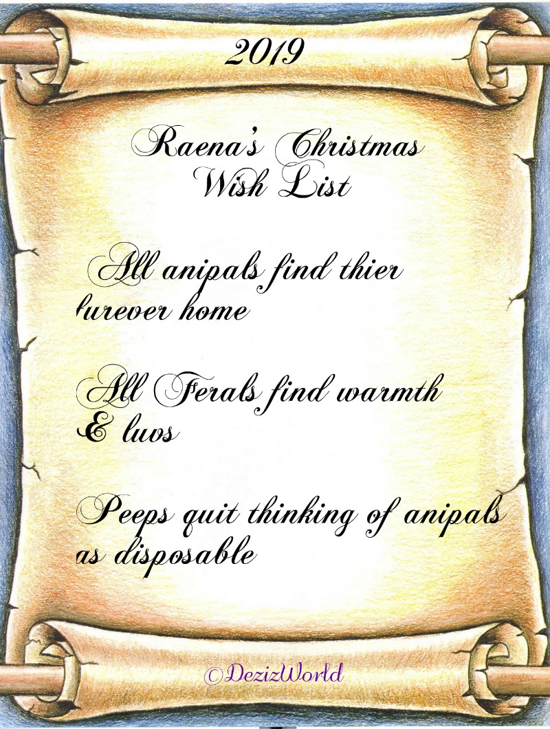 Hey everypawdy, it’s me, RaenaBelle. I’s comin’ to ya’ from the frozen Three Belles Ranch. Meowin’ of ranches, ifin you read our last posty you know we received a bag of horse cookies. Well, we learned what happened, and as suspected, they were sent here by mistake. But, they won’t be goin’ to waste, our horsey furiend Brenda will be havin’ a very Merry Christmas. Meowin’ of Christmas, can you believe it’s only five days away?!! We would have normally written our letters to Santa by now, but with everything’s that’s gone on over the past year, we’re totally behind on everythin’.
