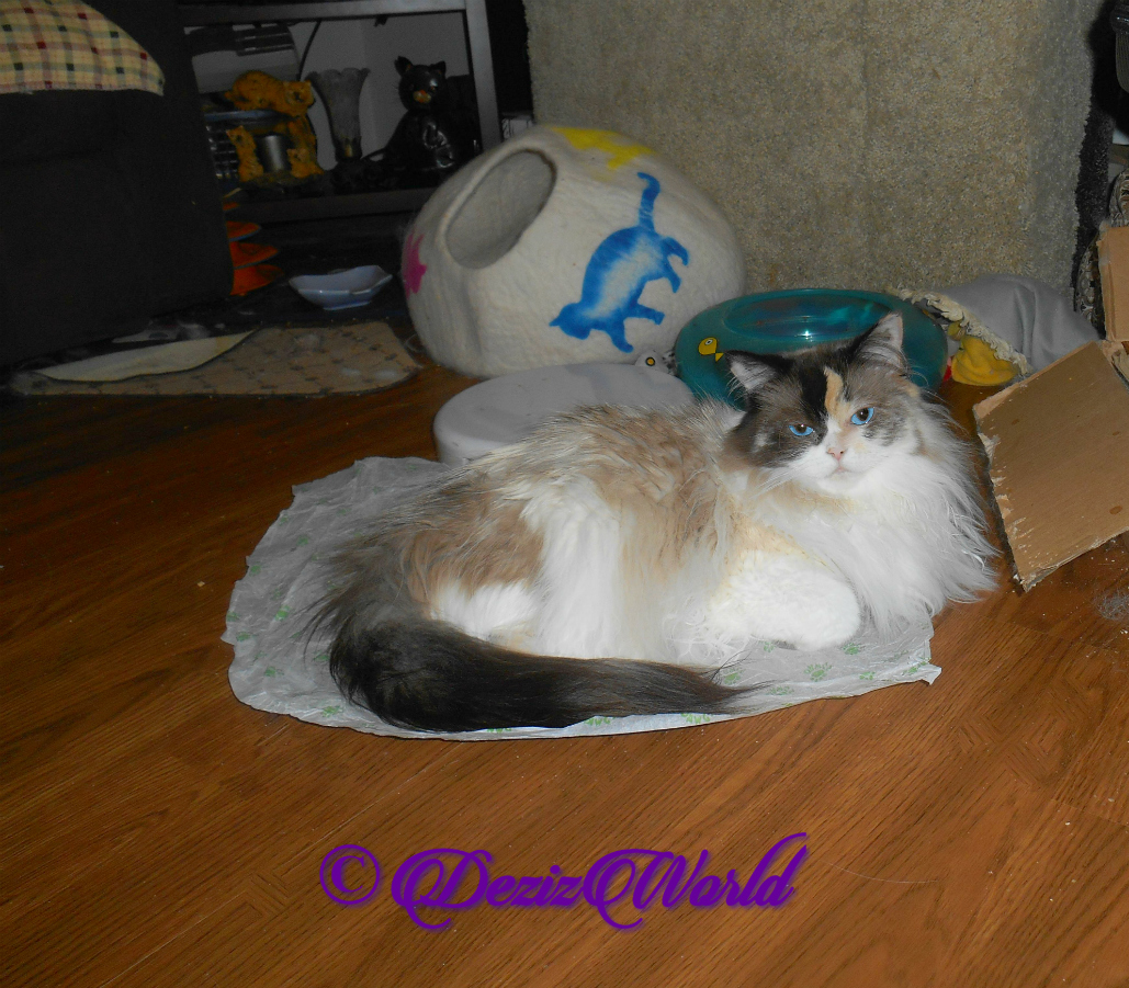 Hey everypawdy, RaenaBelle coming to you live from the Three Belles Ranch. (Raena giggles) I’s haven’t meowed that in a while. Anyways, thanky thank you all fur the kind words and well wishes. And a special shout out to our good furiends the Trout Towne Tabbies fur their suggestion of peppermint tea bags to fight our onslaught of spiders. Mommy’s gonna be picking up some the next time she can get to town.