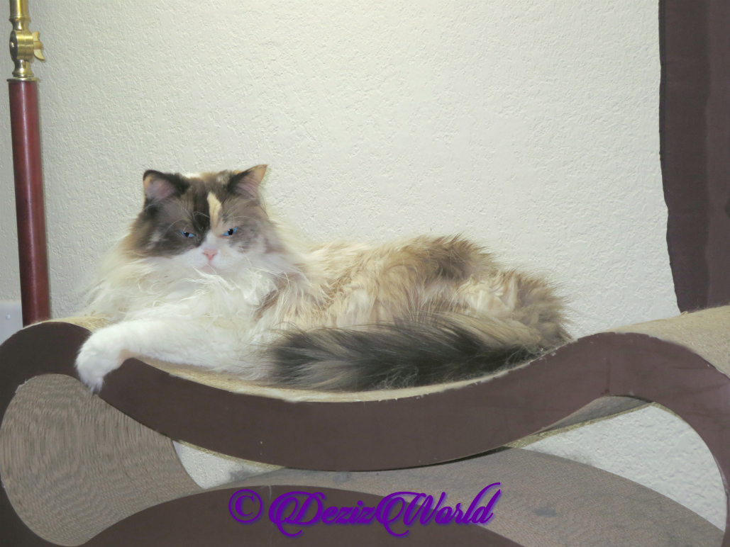 Raena lays atop the liberty cat treeWho me???……Noooooo, I’s a good girl.