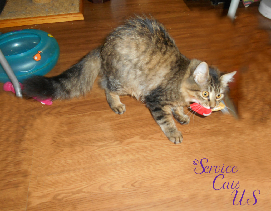 Yep, I’s luvs mine’s new toy too. Thanky thank you fur everything awnty Vonda. And, we also wanna thanky thank awnty Susan, and awnty Anonymous fur the green papers. And I’s wanna thanky thank Andy and awnty Judy fur the bootyful card. We also wanna thanky thank all those who sent us suggestions and offered advice. I’s purrsonally wanna say a meowsy big thanky thank you to all of you fur your well wishes, good thoughts, purrs and purrayers. I’s had quite a few really rough days, but I’s thru the worst of it and I’s gonna be fine.