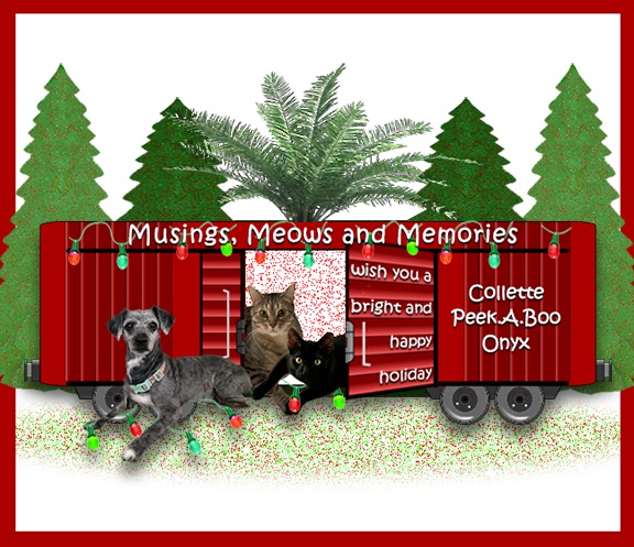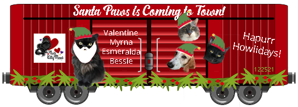 Then the Train headed straight over to Messy Mimi’s to pick up our pawsum furiends, Dansig, Link, Enigma Sissycat, Tripod Sissycat, and Little Girlie. You’ll always find a piece of useful or interesting infurmation at their place along with some great photos. Thank you fur being our furiends and joining us fur another year of Blessings.