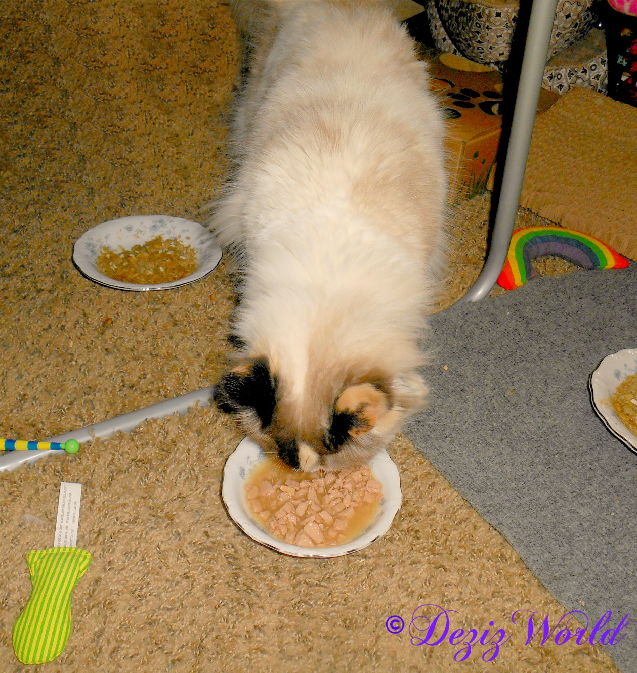 Me knows Raena. But sometimes, mommy just can’t take the hint. Did you see her chasin’ me ‘round the house with that plate? Me already told her me didn’t wanna eat it, and here she comes, right over to the scratcher. We never get to eat on the cat furniture. Did she think me would suddenly eat pressed turkey ifin me could eat it on the scratcher? Hmmpht  Not happenin’.