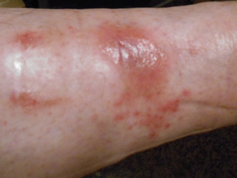 That we are Raena. Another blessin’ we got this week was help with mommy’s leg ouchie. Some of ya’ may ‘member that mommy fell right befur Christmas and hurt her leg purretty bad. It got to hurtin’ somethin’ fierce last week, so we asked ifin anypawdy had any suggestions on how to treat it. Mommy’s V E T had told her to keep puttin’ that triple antibiotic cream on it and keep it wrapped. But, it didn’t seem to be gettin’ any better. And cuz mommy had to use a few bandaid type bandages cuz she ran out of gauze pads, she had some new sores where the sticky had been. Mommy’s ‘lergic to bandage sticky, and we’re thinkin’ triple antibiotic cream. As always, our pawsum furiends purrayed and gave us some great ideas fur treatin’ her ouchie. Warning: Below are purrgressive fotos of mommy’s ouchie. Ifin ya’ have a weak tummy, scroll quick, there’s only 3 and we made them small.