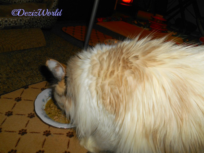 The ingredients look purretty good and we like the made in the USA pawrt fur sure. But, the only thing that really matters is does it taste good, did we wanna eat it. The cans are packed full, but the gravy’s not very gravy like; so mommy added water to thin it out some. Ya’ know, it’s really ‘purrtant fur us kitties to get that added moisture in our diets. Anyhow, mommy offured us a plate of turkey the furst night. Neither sissy or me wanted any pawrt of that. Mommy says she wasn’t terribly surpurrised since we don’t typically eat any canned turkey.