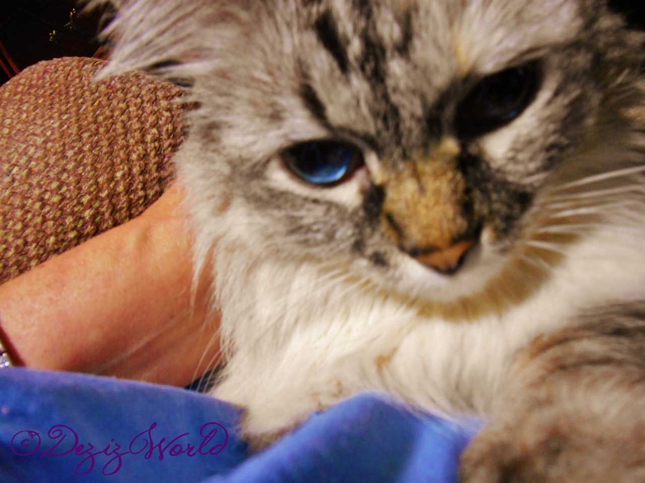 MeOW C’mon Raena, it’s time fur our Blest Sunday posty. We’ve got so much to meow ‘bout today. And, we’re furinally rested up after havin’ stayed up all night and day fur 3 nights and 4 days straight with mommy. Altho’ ifin me’s meowin’ the truth, me must admit we all had a few cat naps in the sittin’ chair. Me’s purretty sure me heard mommy snorin’ a time or two befur joltin’ herself awake. Mommy keeps sayin’ she’s gettin’ to old fur these all nighters, and me totally agrees. Me’s way to old to be stayin’ up that many hours a day. Doesn’t she know us kitties need our beauty naps? Hmmmpht Me must’ve looked like somethin’ an old tabby cat would’a drug in after the second night, and me wouldn’t even wanna know what me must’ve looked like after the third.