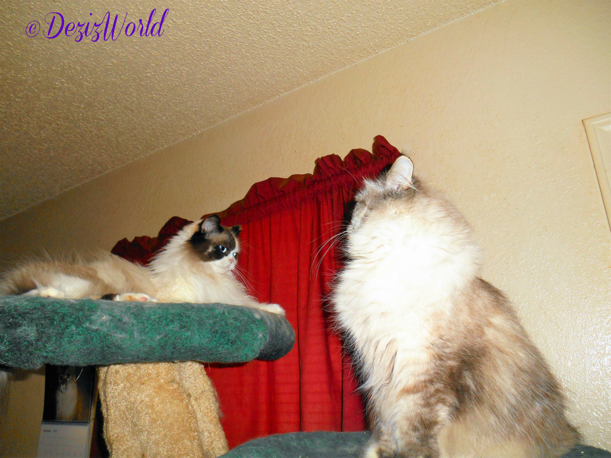 Yes I’s do sissy. You never know when mommy might need me. I’s just bein’ a good girl and lettin’ mommy know I’s there to help her any time, any way she needs me. Mommy shouldn’t have to holler fur us and wonder where we are. You know how much she hates that. Mommy’s always sayin’ she likes fur us to be where she can see us and hear us and touch us ifin she wants. I’s just doin’ what mommy wants me to do. She’d like you to do it too, but noooooooo, you were too busy bathin’ on the scratchin’ pad.