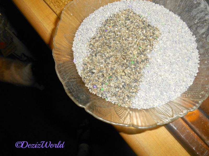 I’s bet they do sissy. Wanna bet? Why don’t we ask ‘em? Anyways, I’s gettin’ off track here. Where was I’s? Oh yeah, after openin’ the bag, which by the way has no way to reseal any unused pawtion, mommy decided not to put the litter in any of our pawtty boxes. It smells kind’a moldy and funky, altho’ we didn’t see any mold and I’s not sure what funk looks like. So, mommy placed some in our handy dandy bowl so we could purrform some tests. You know the ones, what’s the texture, does it make a good clump and is it easy and clean to scoop?.