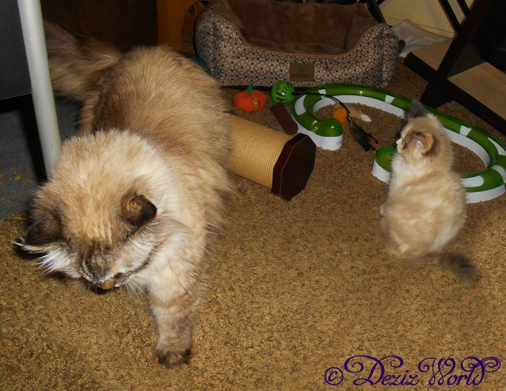 Hey? Is anypawdy there? I gotta be quick befur sis Dezi figgers out dat I’s on her bloggy. Mommy says it’s our bloggy, but Dezi keeps tellin’ me her name’s at da top, so she gives da orders. She says dat ‘bout a lot of things, but I don’t always lissen. Like, she thinks she should be da only one eatin’ outta her plate. But I think da food taste better in her plate, and don’t see why she doesn’t wanna share?. After all, we are sisfurs. And her pawdee box, it’s…well, I better get on with it, or she’ll come lookin’ fur me.