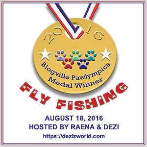 Of course she does Raena, she doesn’t want you to feel left out, BUT…it’s me’s name at da top. You’d do good to ‘member dat. Anyways, you and mommy gotta get ready to go, so we need to wrap it up. Any purrayers you can spare would be purreciated. Da a/c in da car still doesn’t work and da windows still don’t roll down. And it’s finally hot summer here. And altho mommy believes in getting’ da kitten series of vaccinations, she realizes there is still a certain amount of risks associated with them. Don’t furget to send in your fotos fur our Pawlympics Fly Fishin’ event.