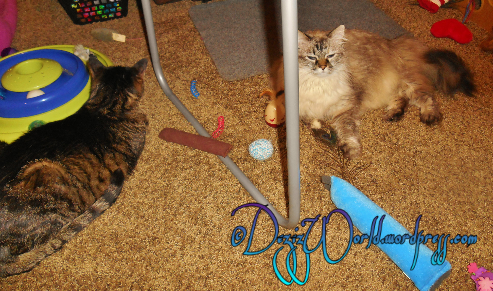 Now here is where mommy kinda disagrees with the current thought processes of most. Most articles and Vets say that the long haired breeds tend to have more hairballs than the shorter haired kitties. Mommy sez pishaw to this. She’s had plenty of long haired cats and only a couple of short haired cats so maybe she might just know a thing or two about this subject. See, sis Lexi has far more hairballs than any long haired kitty mommy has ever had, me included. If we was to give you a ratio figure, sis Lexi would throw up a hairball 9 more times out of 10 than me would. Now we was actually asked a question once ‘bout these here hairballs. One of our dear Facebook friends started noticing her 2 year old cat convulsing and then vomiting out a mess and cryin’ ‘bout it. Mommy figured out he was having hairballs and told her what to do and voila, everything was under control again. She then told mommy he hadn’t ever done that before, so why was it now happening? Well it’s true, kittens don’t have hairballs. But once we get older and become great fur stylists, that’s when the fun begins. And by the way, our friend…he was a short haired tabby too.