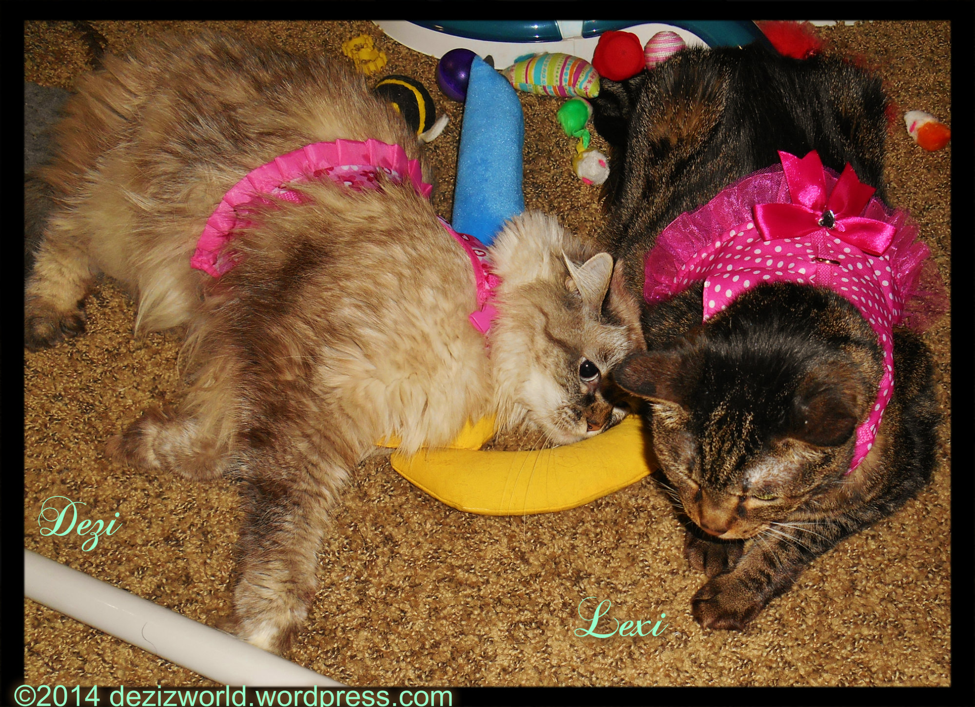 I couldn’t wait to tell sis Dezi all ‘bout how they had mistreated and tried to kill me. Fankfully she’s a great big sissy and told me not to worry, mommy would never let dat happen and dat I’s was gonna be okay. She even kissed mines head and patted mines sore hiney. I was a little sickly and lethargic fur a couple days, but no fever and I’s did eat. I’s feelin’ all better now. But, mommy’s gotta put these eye drops in mines eyes now. 3 times a day. Yep 3 times a day she’s droppin’ somethin’ in mines eye. They seem to be feelin’ better, but I’s not like it one bit. Mommy says we’s gonna save da rest of our trip fur tomorrows Service Cat posty cuz it addresses some issues we wanna talk about and some of da questions we were asked after last weeks posty.
