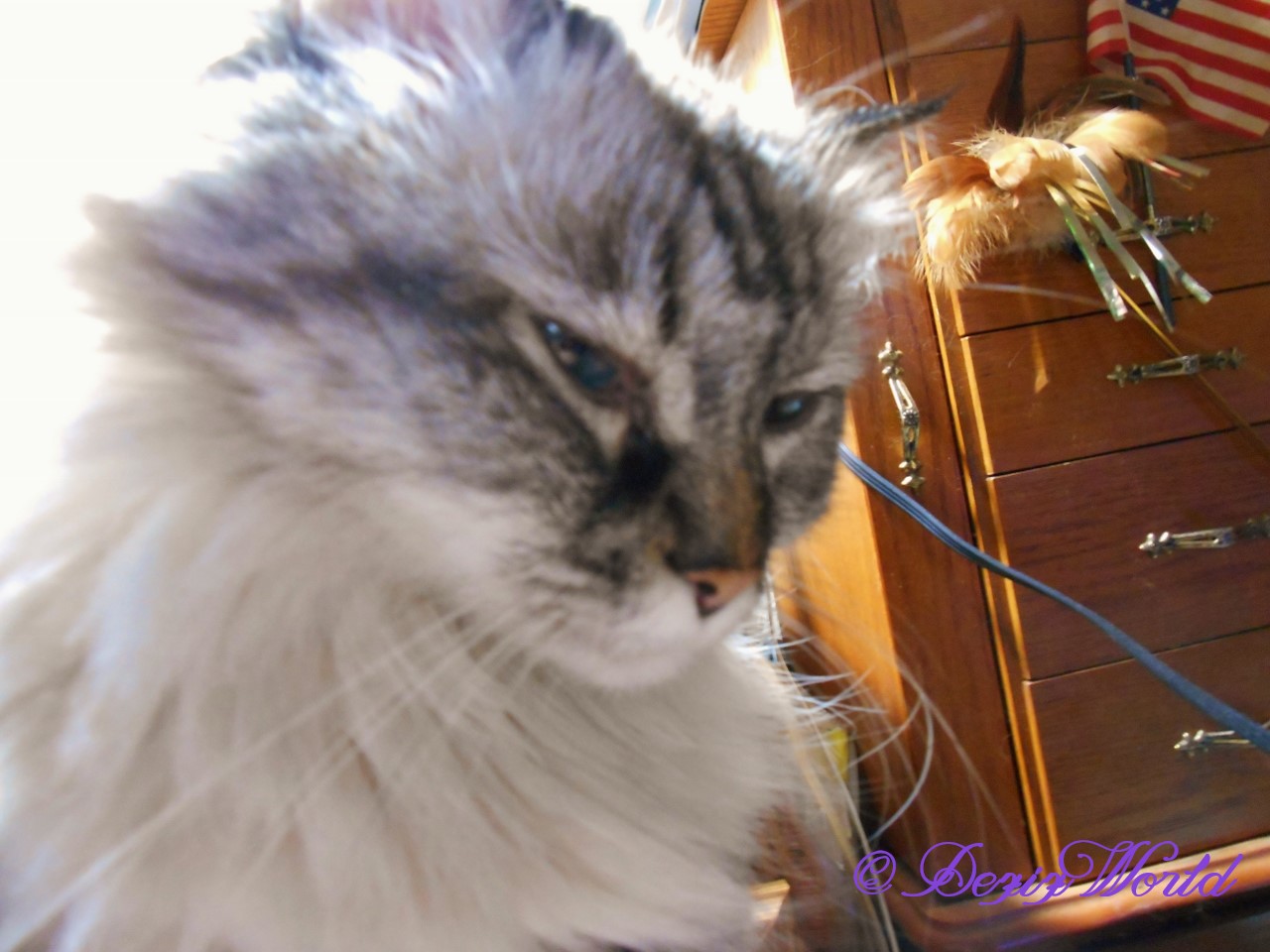 ‘Course RaenaBelle, what are big susfurs fur?. (Dezi mumbles under her breath) Besides, mommy would make me share whether me wants to or not. Anyways, (Dezi turns and meows to Raena) Me’s sure there’ll be purrlenty of food and fun fur everyone. (Mommy A picks up Dezi and puts her in her harness) MeOW Wait a minute, where are we goin’? The last kitty out that door didn’t come back lookin’ too good. Me’s not goin’…Hisssssssss