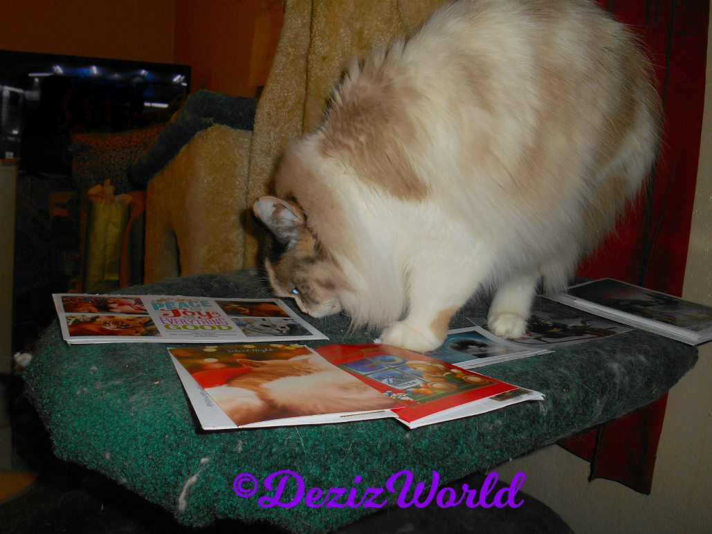 After you walked all over and sat on ‘em Raena. Me can’t believe you sat on our Christmas cards.
