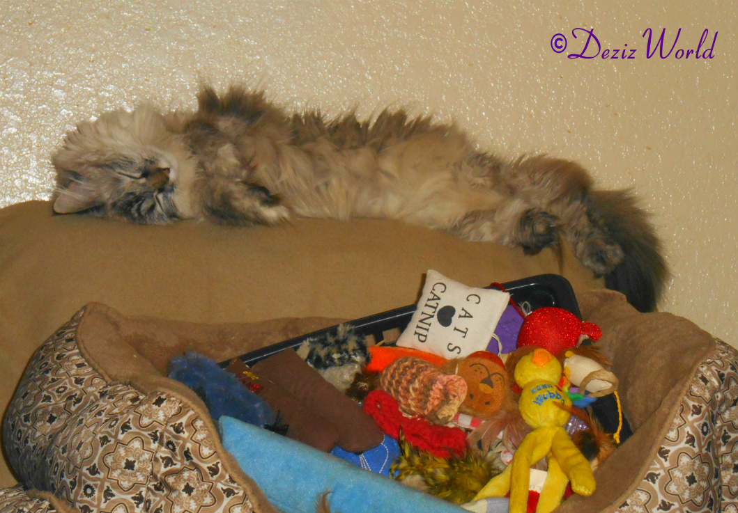 Anyways, we’re gonna get outta here now and see ‘bout playin’ some. Maybe Simon, can come back fur another play date with Raena. We hope the weather warms up again soon, but it is still winter so you never know. MOL Here’s purrayin’ ya’ll have a pawsumly blest Sunday.