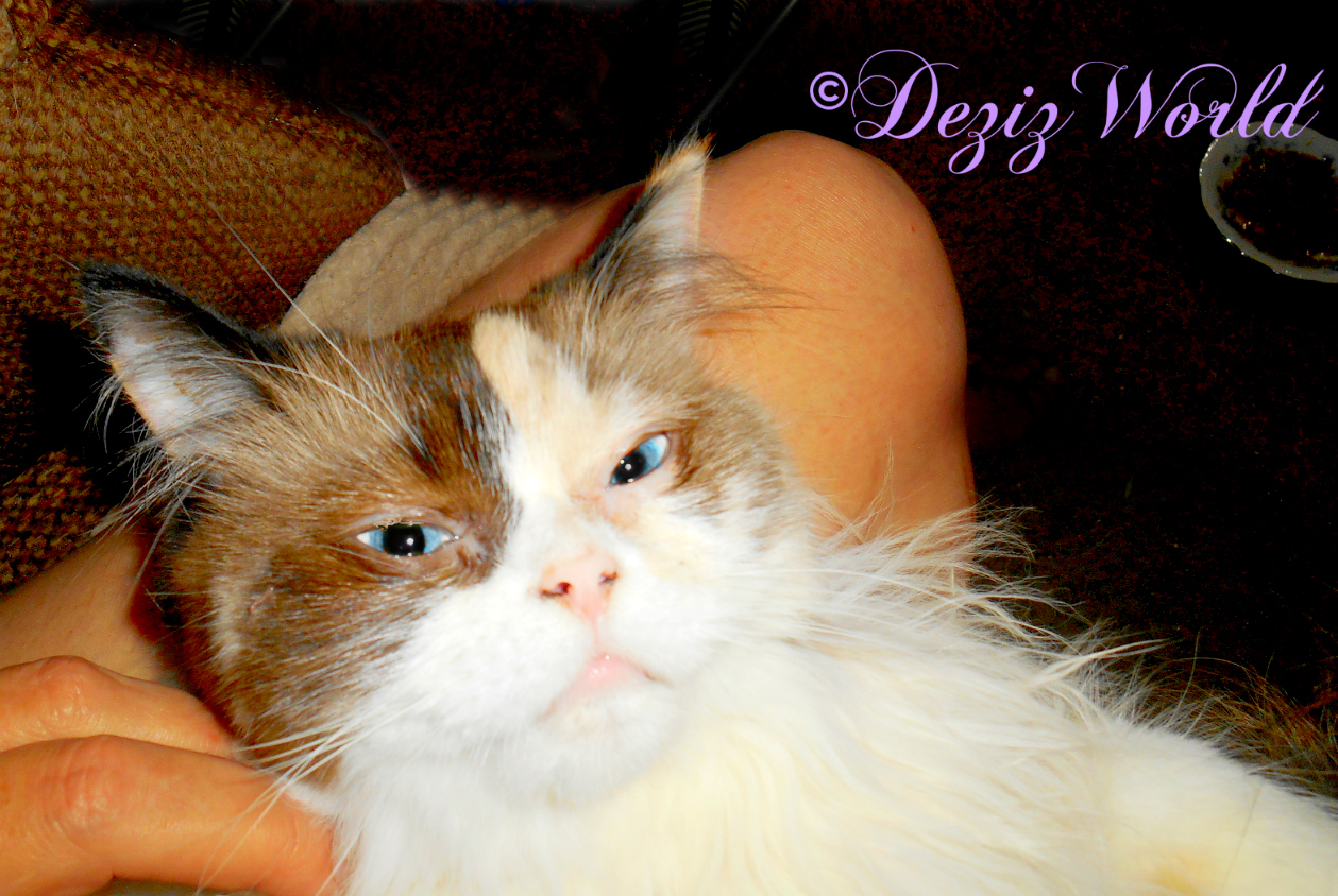 I couldn’t wait to tell sis Dezi all ‘bout how they had mistreated and tried to kill me. Fankfully she’s a great big sissy and told me not to worry, mommy would never let dat happen and dat I’s was gonna be okay. She even kissed mines head and patted mines sore hiney. I was a little sickly and lethargic fur a couple days, but no fever and I’s did eat. I’s feelin’ all better now. But, mommy’s gotta put these eye drops in mines eyes now. 3 times a day. Yep 3 times a day she’s droppin’ somethin’ in mines eye. They seem to be feelin’ better, but I’s not like it one bit. Mommy says we’s gonna save da rest of our trip fur tomorrows Service Cat posty cuz it addresses some issues we wanna talk about and some of da questions we were asked after last weeks posty.