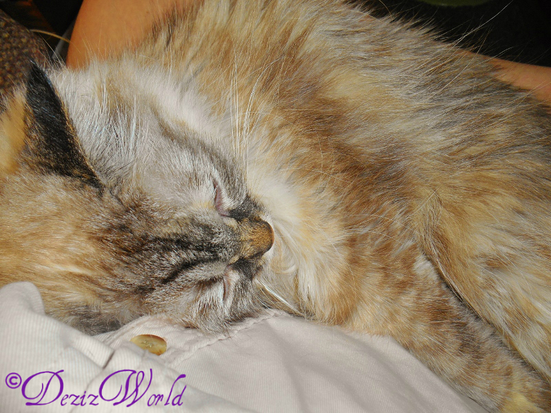 When he asked mommy when she had stopped my antibiotikz, she sed she hadn’t. She told him dat everything she readz tellz her dat I shuld get them fur at leazt 3 weekz and maybe even 4. So he sed, “Well that’s fine. I think she probably had a bladder infection and I treat those for 3 weeks instead of 2.” You know he’z one of those dat can’t ever admit dat he duzn’t know everything and dat mommyz research iz valuable. Anywayz, he then star-did manhandlin’ my head and I skooted back towardz mommy. He grabbed my paw to pull me back towardz him and I’z gave him da hisssssssss of disapproval and he let go. MOL He sed I shur had a lot of spunk fur my kundishun. And then he told mommy, “Well keep doing what you’re doing, she’s looking good. I don’t know how, but she’s looking good.” Mommy, Dezi and I attribute my duin’ so good to God and all da purrayerz and mommyz research and treatmentz. I shur waz a happy kitty when we finally left dat smelly place and all da white coatz behind.