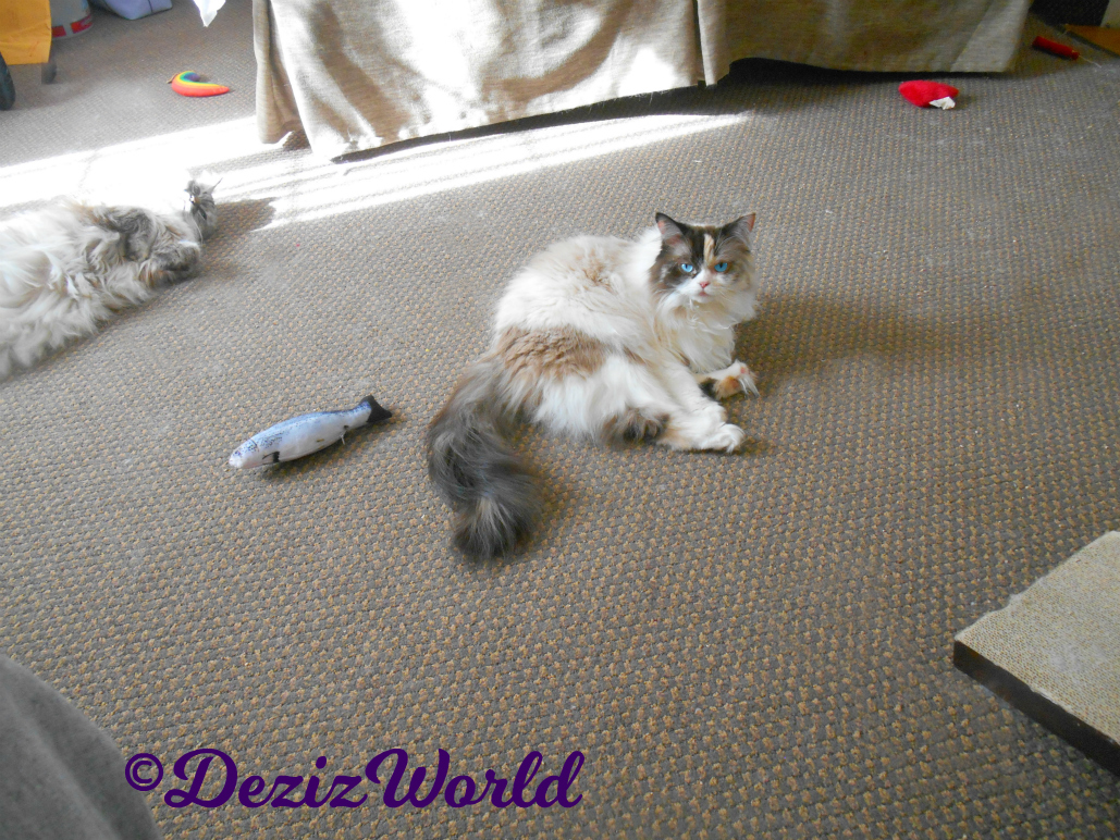 Hey, hey, hey dearest furiends, do ya’ know what time it is? It’s Pawrty time!!! Yeah!!! We’re celebrating mine’s birthday, 4/21, Zebby’s birthday 3/14, and Zebby’s gotchaday 4/28. (Raena zooms through the house and runs up and down the cat tree before nestling into mommy A’s lap for a little lap loving time.)