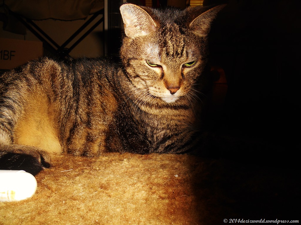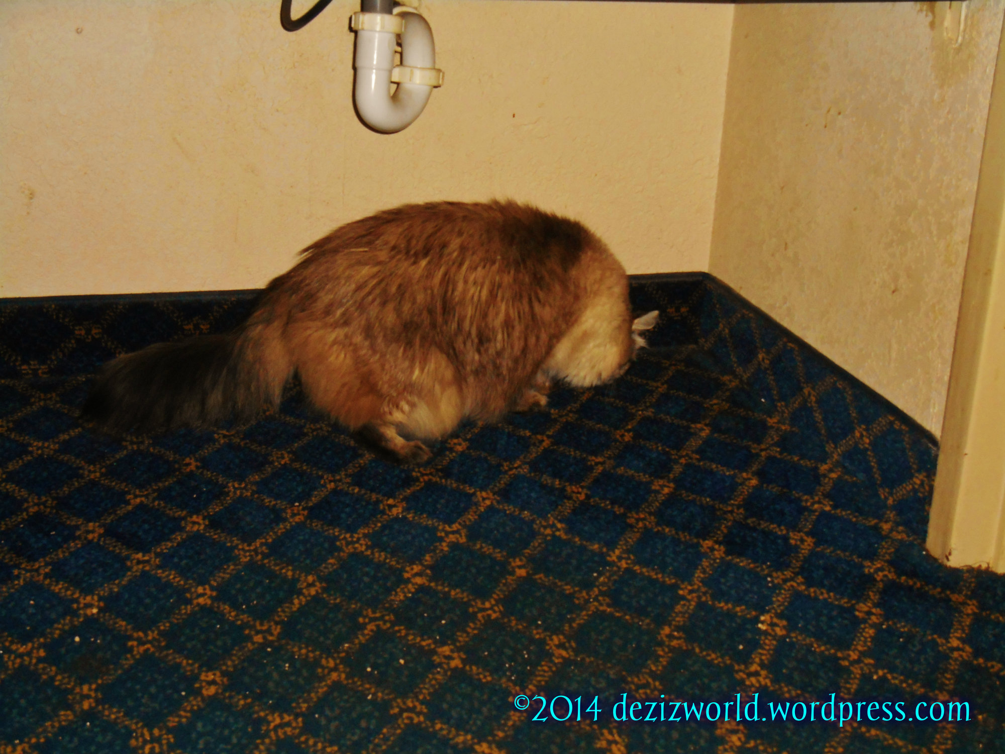 Yous never gunna believe da story meez gunna tell yous today. Weez wuldn’t believe it ifin weez hadn’t been here. And membew, weez only tell da twuff here lessen udderwise noted, so dis all be da twuff. As yous all know me has a quest wiff da cat scouts this weekend and it kicked off last night at 6 p.m. ow time. So as mommy wuz twyin’ to get evewyfin’ dun so hers kuld hav sum time to help me wiff da ‘puter, da cwaziest fing happened. Da last fing hers wuz gunna do afur settlin’ in wuz to go to da pawdee box woom. Well of course bein’ a Service cat, hoo is me kiddin’, bein’ a cat; me kuldn’t let hers go alone. So off weez went. Wight after hers sat down meez dwopped to da floor and stawted lookin’ in da diwection of da washin’ machine. Me wuz on high alewt. Mommy looked at me and sed, “Honey, what’s there? What is it baby? Dezi, honey, look at me.” Meez didn’t move. Mommy sez, “Dezi, that better not be a snake!!” And then……me hissed and slapped and WATER went evewywhere!! Well of course by this time mommy wuz dun wiff da hooman pawdee box and so hers tippy-toed over to da washer and………”YOU’VE GOT TO BE KIDDING ME?!!!”