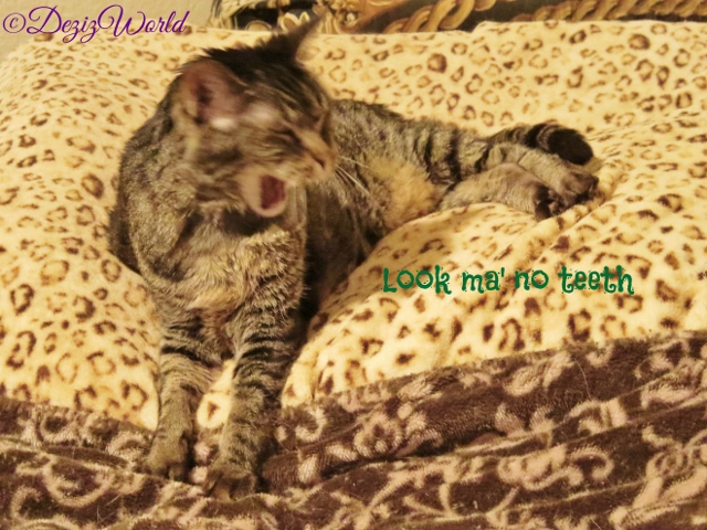 Parently Dental Disease is at da top of da list of things affectin’ your furry furmily member. Sis Lexi started losin’ her teeth when she was about 5 years old. Dat is not normal. She was basically born with Periodontal Disease. Her furst VET kuldn’t ‘splain it any other way, cuz even afur she had teeth she had red swollen gums. Over da years mommy and many VETs tried to help sissy to no avail. Till she started losin’ her teeth. With each lost tooth, da swellin’ and redness disappeared. We animals can survive and even thrive without our teeth. So long as we’s not havin’ to hunt and kill our own meals. Obviously sissy duz better with wet meals than dry, but wet meals be better fur her and most of us (specially kitties) anyways. Da typical symptoms of Periodontal Disease are: