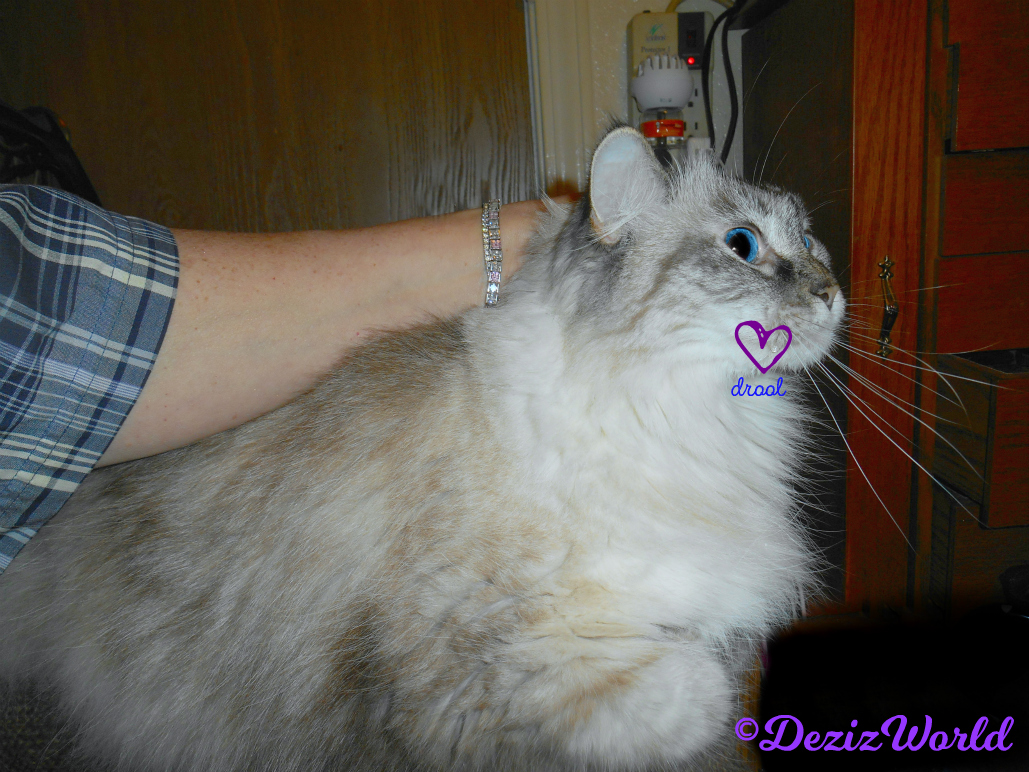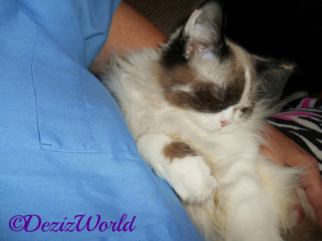 Me couldn’t help it Raena, it had to come out. Mommy’s counselor didn’t mind. All she said was, “Is that a hairball?” You know, she doesn’t have any kitties. But, she’s used to seein’ kitties do things durin’ her visits. ‘Member when she told mommy ‘bout that patient of hers that had a kitty who peed on his humans counter durin’ her visit? Least me didn’t do anythin’ like that. (Dezi licks her paw and rubs it across her face)
