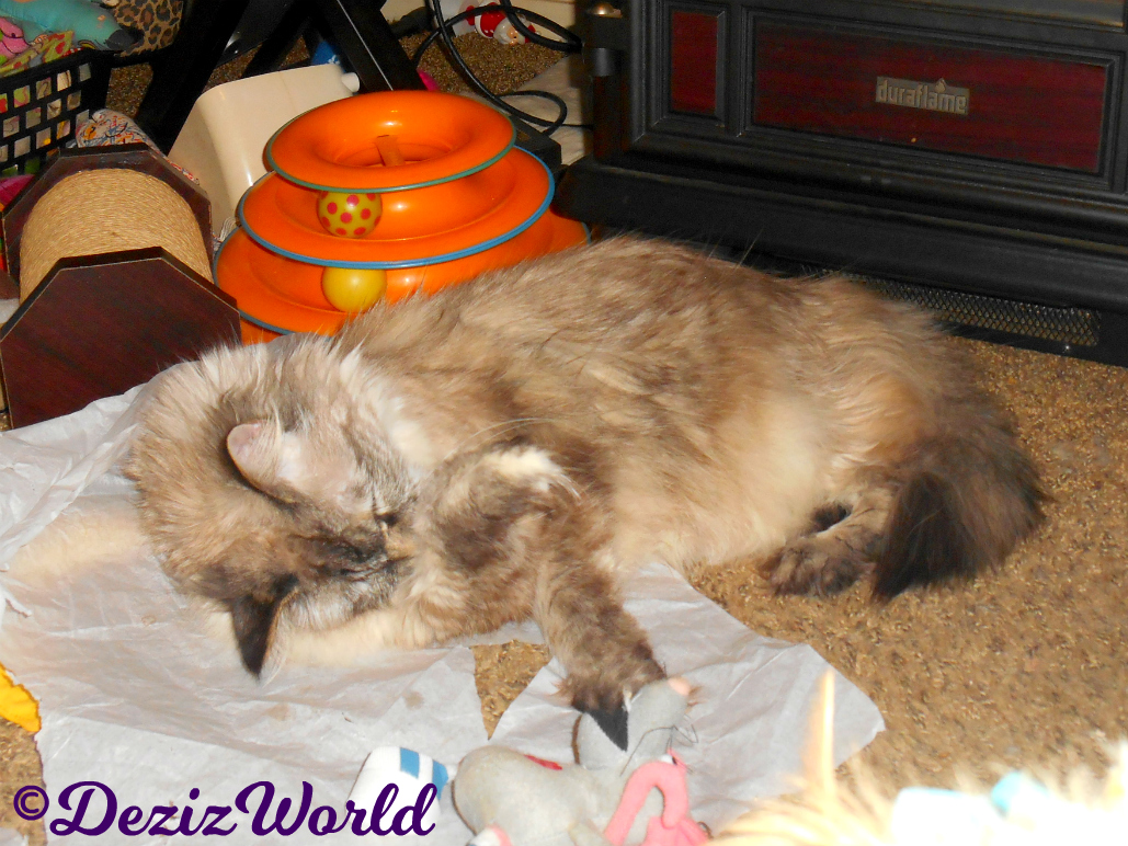 We both do, Raena. But, we luv you very much too. We don’t always unnerstand why God does the things He does, but we have to believe it’s fur a good reason. After all, ifin sis Lexi hadn’t gone to heaven we would’a never had you in our family. And only the good Lord knows what would’a happened to ya’ then. What with your scrawnly little fluffy body and mucky eyes and nose, you didn’t stand a chance in that there cage you were livin’ in. It’s a wonder you could even see or smell. Mommy says she ‘members your furst night here with us. You’d never seen a toy or had room to run, and you were goin’ nuts. It’s like you didn’t know what to do furst.