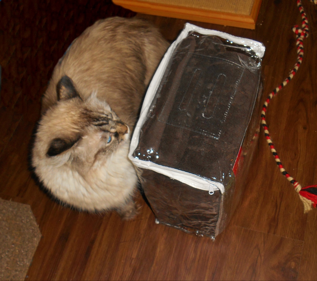 Mommy was so overwhelmed with joy she furgot to send emails and ask ifin we could use names fur our fank yous (a few peeps had notified us early they didn’t want their names listed with their gifts). So, we’ve decided to show you everythin’ we got without listin’ ‘zactly who it’s from, and then usin’ furst names fur our fank yous. We did get a gift card via email yesfurday dat specified no name be mentioned. You know who you are, and we fank you very much. But dat reminded mommy ’bout da name listin’, so we hope you enjoy seein’ our goodies. We know we fur sure purreciate everything. Mommy even likes da cutesy gift wrap bags from amazon; almost as much as we liked da boxes. MOL