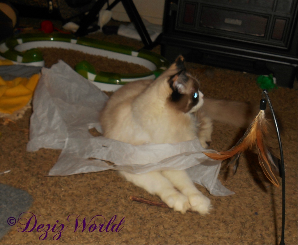 Me too Raena, me too. She cried a lot of happy tears, but she also giggled at us. She said seein’ us so happy and havin’ so much fun, makes her happy. We wanna say a meowsy big Fank you to all da Angels dat sent us purresents.